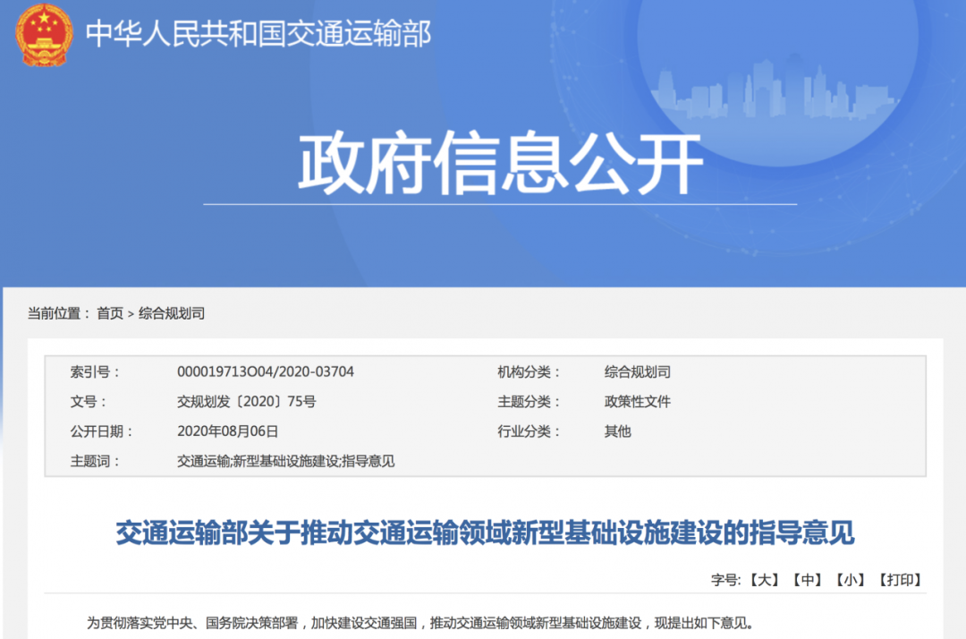 8月初,交通運(yùn)輸部發(fā)布《關(guān)于推動(dòng)交通運(yùn)輸領(lǐng)域新型基礎(chǔ)設(shè)施建設(shè)的指導(dǎo)意見》(交規(guī)劃發(fā)〔2020〕75號),提出打造融合高效的智慧交通基礎(chǔ)設(shè)施,引導(dǎo)在城市群等重點(diǎn)高速公路服務(wù)區(qū)建設(shè)超快充、大功率電動(dòng)汽車充電設(shè)施。鼓勵(lì)在服務(wù)區(qū)、邊坡等公路沿線合理布局光伏發(fā)電設(shè)施,與市電等并網(wǎng)供電。鼓勵(lì)高速公路服務(wù)區(qū)、港口碼頭和樞紐場站推進(jìn)智能照明、供能和節(jié)能改造技術(shù)應(yīng)用。到2035年,交通運(yùn)輸領(lǐng)域新型基礎(chǔ)設(shè)施建設(shè)取得顯著成效。
